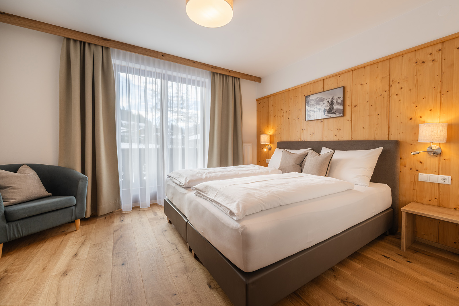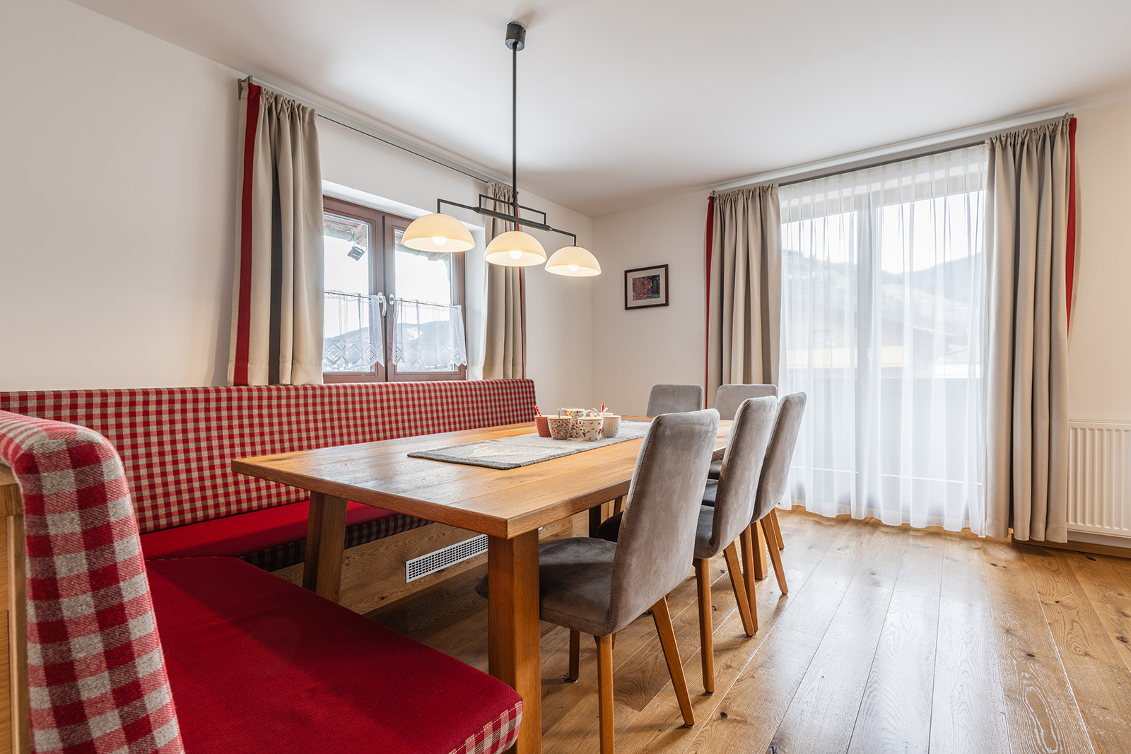 Die Einrichtung und Ausstattung ist im traditionellen alpinen Wohnstil gehalten.